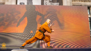 我们的学员们以卓越的精确度和精神进行了表演,令人叹为观止的技巧深深打动了观众。释延衍师父展示了震撼人心的传统少林武术演示,完美体现了少林武艺的优雅、力量与纪律。